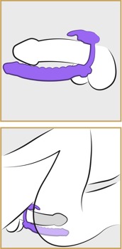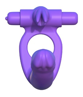 Vibro-cock ring and rabbit-shaped clitoral stimulator with movable, little ears. 1 flexible anal dildo with stimulating grooves and bulging glans is also integrated into the cock ring. The dildo and rabbit attachment both have a removable vibro-bullet that has one speed – controlled at the push of a button. The vibro-ring simultaneously stimulates the clitoris, vagina and anus. For an explosion of female pleasure! Please order the 2 x AAA batteries separately!