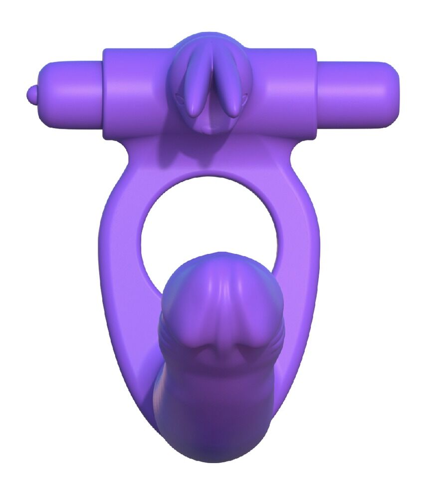 Vibropenisring og kaninformet klitorispirrer med bevegelige ører. 1 fleksibel analdildo med pirrebølger og hodeformet tupp er ffestet til penisringen. Både dildoen og klitpirreren har 1 uttagbar vibrobullet med et hastighetstrinn per tastetrykk. Vibroringen stimulerer klitoralt, vaginalt og analt samtidig. Et sant lystfyrverkeri! Du trenger 2 x AAA/LR03 batterier.