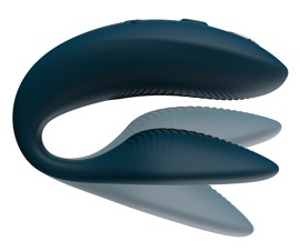 The couple's vibrator, Sync2 from We-Vibe, provides pleasure for a couple during sex with its 10+ vibration modes. The couple's vibrator has an innovative design that has a larger stimulation arm for reaching the G-spot better and providing even more intense pleasure when it hits the spot. The velvety soft silicone vibrator is still flexible so that it can adapt perfectly to the couple's bodies and movements.