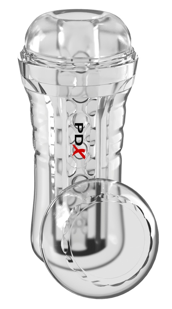 Transparante ViewTube Plus See-Thru EZ-Grip Stroker Doorzichtige masturbator van PDX Elite in een antislip doorzichtige sleeve met beschermkap. De penis wordt rondom gemasseerd door intensieve structuren in de ultrazachte sleeve. Voor ritmische handjobs waar iedereen naar kan kijken! De vacuümopening aan het einde van de masturbator zorgt voor extra zuigsensaties zoals bij de beste pijpbeurt. Open en sluit de opening eenvoudig met één vinger om de zuigkracht te variëren (Suction Control).