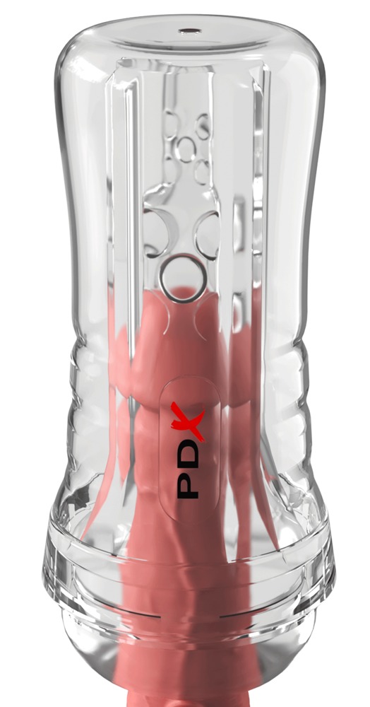 Przezroczysty masturbator ViewTube Plus See-Thru EZ-Grip Stroker Clear od PDX Elite w antypoślizgowym przezroczystym rękawie z nasadką ochronną. Penis jest masowany dookoła przez intensywne struktury w ultra miękkim rękawie. Dla rytmicznych handjobów, które każdy może oglądać! Otwór próżniowy na końcu masturbatora zapewnia dodatkowe doznania ssania, jak najlepszy lodzik. Wystarczy otworzyć i zamknąć otwór jednym palcem, aby zmienić siłę ssania (Suction Control).