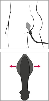 Vibration (10 modes), pump function and air release function can be controlled together or separately using the buttons on the remote control on a wire. The remote control can also be used to control the Auto-Throb Function: the anal vibrator inflates and deflates automatically in a pulsating rhythm which creates a particularly stimulating feeling. The anal vibrator's volume can also be reduced in an instant by pressing a button or switching off the toy.