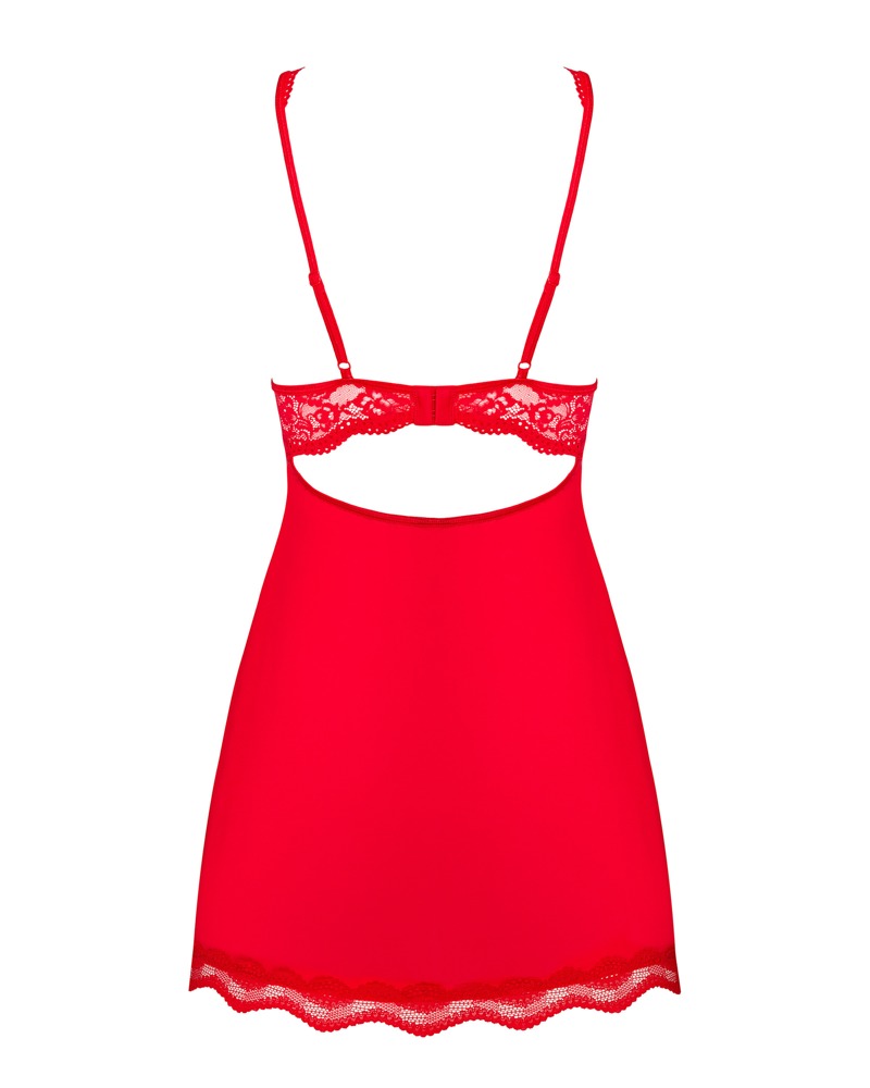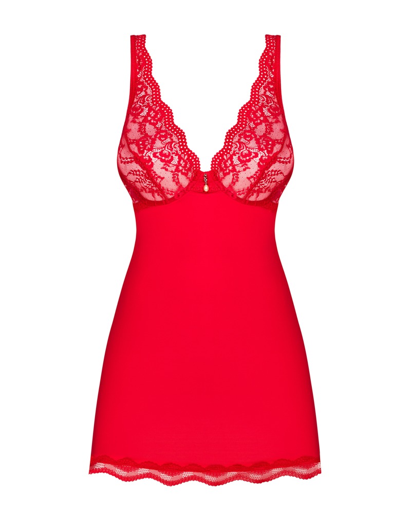 Denna eleganta, knallröda babydoll med string från Obsessive är en omtyckt klassiker. Med snygg spets på brösten och pärlpynt. Mjuk BH med bygel. Axelbanden kan justeras.