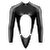 Schwarzer, körperbetonender Riobody von Svenjoyment mit langem Arm. Provokanter Style im blickdichten Mattlook mit transparenten Powernet-Einsätzen. Elastisch und weich anschmiegsam für hohen Tragekomfort. Vorne großer Cut-out mit Ringen. Darüber Stehkragen und Reißverschluss, darunter im Beutel ein unterlegter Reißverschluss.