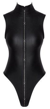 The emphasising body from Cottelli PARTY is made out of trendy black matte look. There is also a long zip with sparkly rhinestones on it. The zip goes from the stand-up collar right down to and over the crotch. The body is in a thong style and has very high legs that really emphasise the legs and buttocks. The stretchy matte look material clings tightly but comfortably to the body.