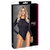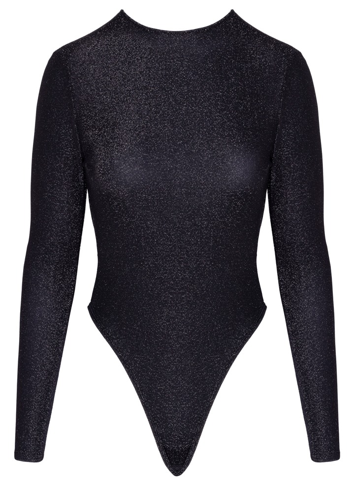 The long-sleeved thong body from Cottelli PARTY is made out of black material with integrated glittery silver-coloured material. It is soft and stretchy for a very comfortable fit. It is breathtakingly backless and there is a cord at the back of the neck that has an adjustable fastener. The thong style gives it a high leg look, which emphasises the legs and buttocks in a stunning way. There is a practical hook fastener in the crotch area. 60% polyamide, 30% polyester, 10% spandex.