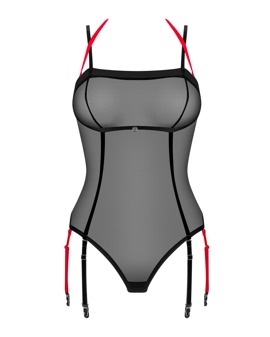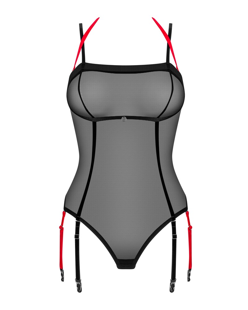 Den halvgenomskinliga bodyn Glandez från Obsessive har en avtagbar neckholder och du visar brösten på nolltid. Strumphållarna är också avtagbara och gör att bodyn kan kombineras med mycket.