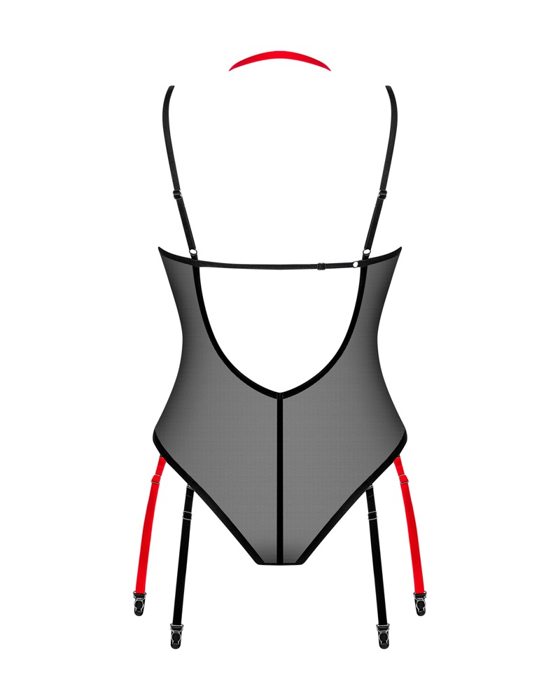 The semi-transparent body Glandez by Obsessive quickly reveals the breasts with the removable halterneck. The suspender straps are also removable, making the body versatile and easy to combine with other clothing.