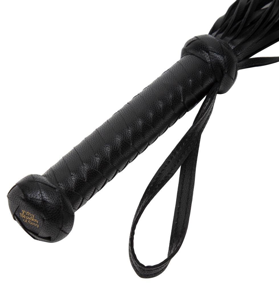 Velegnet både til myke kjærtegn og røff avstraffelse. Pisken Bound to You Flogger fra Fifty Shades of Grey i jukselær med 30 myke snerter. Stabilt, viklet treskaft med løkke til hånd, som gjør pisken enkel å bruke.