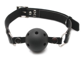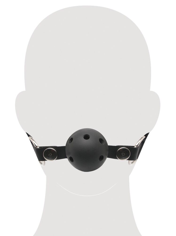 Et munnknebel er helt nødvendig tilbehør til lek med makt og lyst. Denne bitefaste knebelballen har pustehull og gir nok luft selv under stilltiende nytelse. Justerbar hodereim i jukselær.