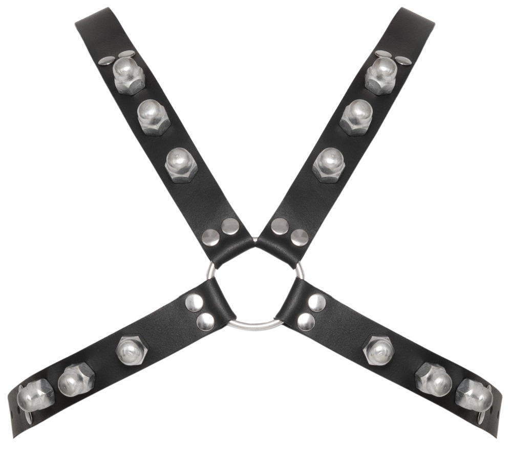 Dieses schwarze Brustharness von ZADO aus hochwertigem, sorgfältig verarbeitetem Leder überzeugt durch seine markanten Kuppel-Ziernieten, silberfarbenen Metallschnallen und soliden Ringe. Das robuste X-Harness besticht mit exklusiver Optik und hoher Langlebigkeit. Die mehrfach verstellbaren Lederriemen mit praktischen Schnallenverschlüssen ermöglichen eine flexible Anpassung für perfekten Sitz und maximalen Tragekomfort. Ob direkt auf der Haut oder als stilvolles Accessoire über einem Shirt – dieses Brustgeschirr zieht alle Blicke auf sich!