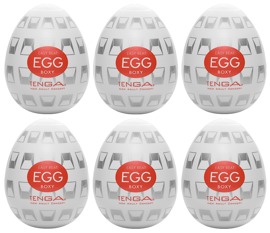 Masturbador desechable compacto Egg Boxy de TENGA con una excitante y versátil estructura de estimulación graduada en su interior. El manguito masturbador ultra flexible se encuentra dentro de la cáscara en forma de huevo y se utiliza conjuntamente durante la paja con el lubricante incluido.