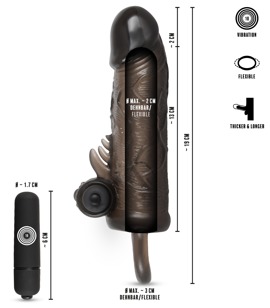 Esta cubierta del pene se inspira en el anillo testicular y en la bala de vibro. La cubierta, que es muy flexible como el anillo y está dotada de un glande abultado y de venas pronunciadas, se estropea con 4 pequeñas puntas de estímulo y un compartimiento de inserción con nudos para el Vibro-Bullet adjunto, que tiene 10 modos variados.