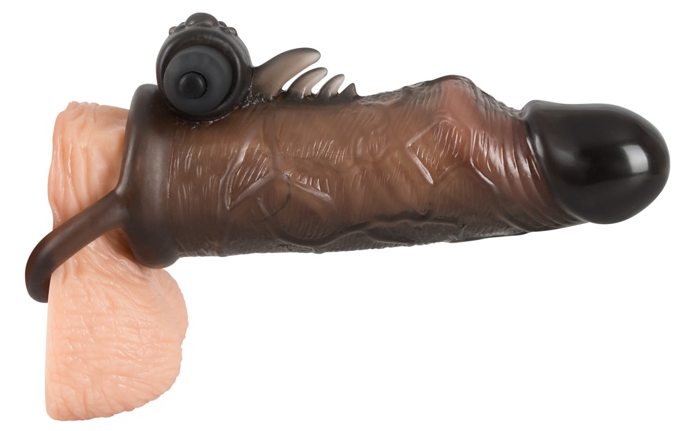 Ta osłona penisa inspiruje pierścieniem jąder i wibracyjną kulą. Pokrywa, która jest bardzo elastyczna jak pierścień i wyposażona w wybrzuszające się żołądź i wyraźne żyłki, psuje się z 4 małymi zębami stymulującymi i wkładką nubbingową do załączonej wibro-bulotki, która ma 10 różnych trybów.
