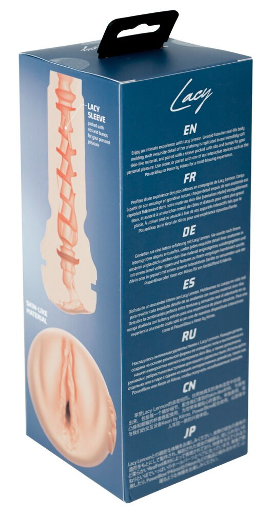 Poczuj masturbator Lacy Lennon od Kiiroo z oryginalnie uformowanym sromem gwiazdy erotycznej Lacy Lennon. Wnętrze o bardzo zróżnicowanej strukturze jest również bardzo zbliżone do pochwy Lacy i zapewnia intensywny masaż podczas ręcznej roboty. Wewnętrzny rękaw wykonany z miękkiego jak skóra materiału jest nawet podpisany autografem Lacy obok warg sromowych. Rękaw można łatwo wyjąć z antypoślizgowej, dyskretnej obudowy w celu wyczyszczenia.