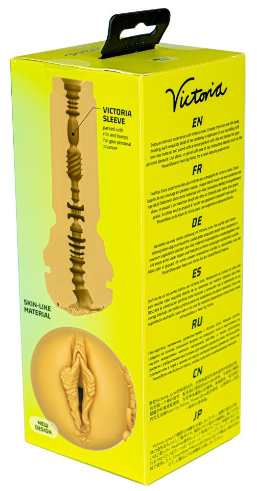Poczuj masturbator Victoria June od Kiiroo z oryginalnie uformowanym sromem gwiazdy erotycznej Victorii June. Wnętrze o bardzo zróżnicowanej strukturze jest również bardzo zbliżone do pochwy Victorii i zapewnia intensywny masaż podczas ręcznej roboty. Wewnętrzny rękaw wykonany z miękkiego jak skóra materiału jest nawet podpisany autografem Victorii obok warg sromowych. Rękaw można łatwo wyjąć z antypoślizgowej, dyskretnej obudowy w celu wyczyszczenia.