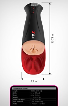 Мастурбатор со стимулятором яичек Fuck-O-Matic Pro XL от PDX Elite с реалистичным видом вагины. С функцией ритмичного всасывания (5 режимов) и вибрации (5 режимов) для интенсивного массажа пениса, включающего в себя яички с гиперпульсирующим массажем. Функциями можно удобно управлять одним нажатием кнопки и комбинировать их по отдельности. Большой светодиодный дисплей отображает режимы для лучшего контроля. Fuck-O-Matic Pro XL также оснащен кнопочным замком для незаметной транспортировки и хранения.
