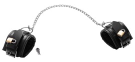 Robuste fodlænker af høj kvalitet fra ZADO i sort læder med sølvfarvet accessoires. Kan justeres med spænder. Omhyggeligt udformet og syet, blødt polstret indvendigt med glat læder. Der medfølger en karabinkæde i skridtlængde til at forbinde fodlænkerne og 2 guldfarvede låse med nøgler til at låse fastgørelsesanordningerne.