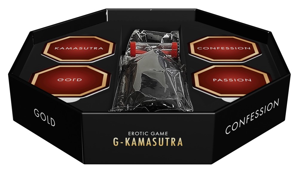 Erotyczna gra planszowa G-Kamasutra od Mad Party Games to gra dla par, które chcą odkryć lub pogłębić swoją intymność. Łączy w sobie zabawne zadania ze zmysłowymi wyzwaniami. Różne karty, na przykład, zapewniają romantyczne niespodzianki, ujawniają sekretne pragnienia i wyzwania Kamasutry. Gra zawiera również satynową opaskę na oczy, pejcz i klepsydrę, które zapewniają dodatkowe emocje i intensyfikują wspólną zabawę.