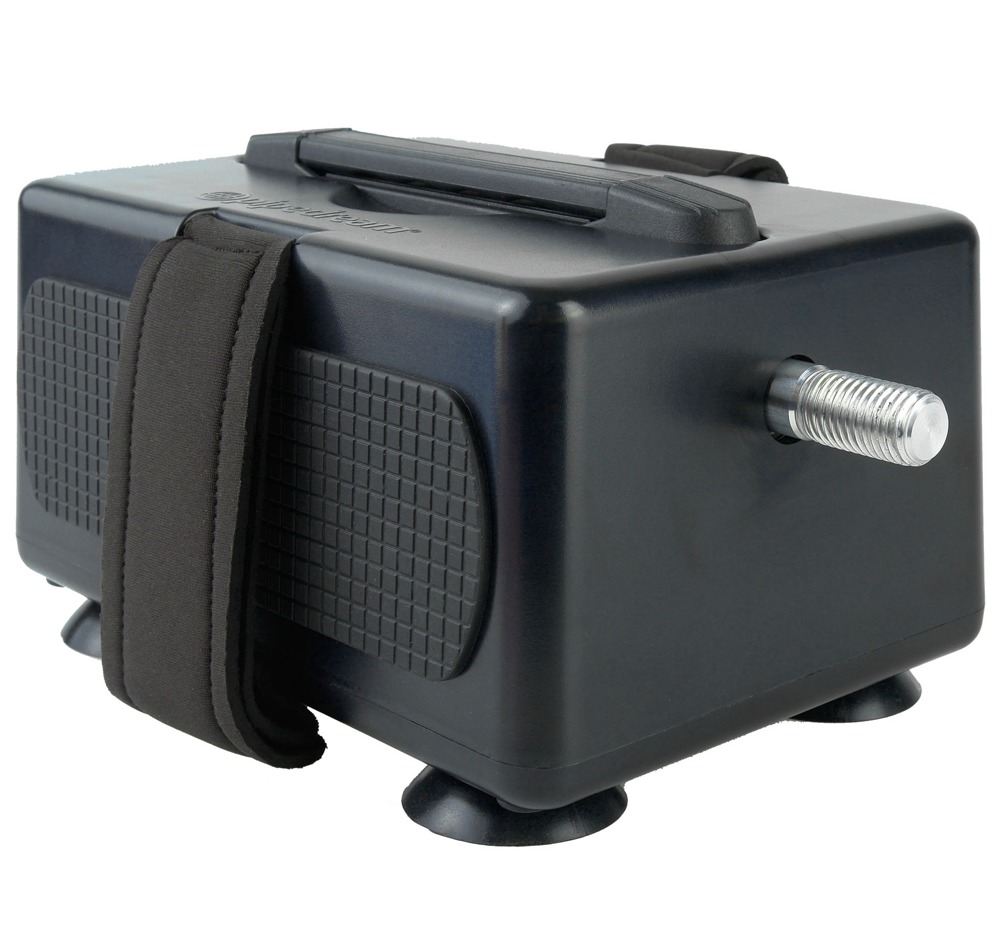 Mains-powered Portable Sex Machine from Fetish Fantasy Series in a handy, compact size with 2 dildos and a vibrator. The sex machine has a handle at the top and cuffs at either side for the hands or feet. The cuffs at the sides can be adjusted with the hook and loop fasteners.