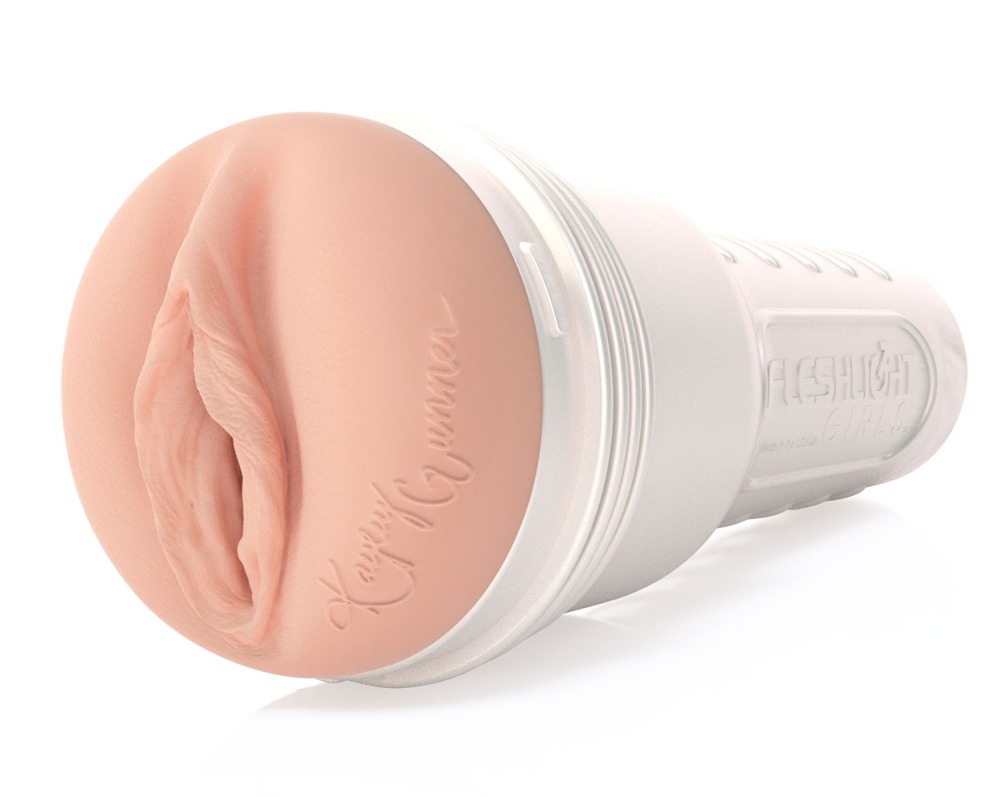 Poręczny masturbator Kayley Gunner Fully Loaded marki Fleshlight o dyskretnym wyglądzie latarki z oryginalnie uformowanym otworem pochwy gwiazdy erotycznej Kayley Gunner. Bardzo zróżnicowane wnętrze o różnych średnicach jest również bardzo zbliżone do ciasnej pochwy Kayley i zapewnia intensywny, skuteczny w orgazmie masaż podczas ręcznej roboty. Wewnętrzny rękaw wykonany z przypominającego skórę, miękkiego materiału Superskin jest oznaczony autografem Kayley obok otworu i można go łatwo wyjąć z masturbatora w celu wyczyszczenia.