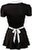 Schattig zwart mini-jurkje met witte kraag, knoopsluiting en rucheversiering aan de halslijn. Inclusief wit schort, bandjes aan de achterkant.