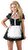 Sweet black dress with a white collar, a row of buttons and decorative ruffles in the cleavage area. Includes a white apron that ties at the back. Dress: 90% polyester, 10% spandex. Apron: 100% polyester.