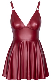The eye-catching mini dress with straps from Cottelli PARTY is made out of elegant matte look material in an amazing colour: red. It is soft and stretchy for a very comfortable fit. The tight-fitting top part has wireless, stitched–on cups for a beautiful cleavage area. The straps on silver-coloured rings can be adjusted to fit. The short flared skirt part sways in a sensual way to emphasise the hips and buttocks.