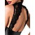 Mouwloos, strak mini-jurkje Orgia van Noir in een zwarte, elegante powerwet-look met fijn kant op de cups en brede bandjes. Zacht en elastisch voor een nauwsluitende, comfortabele pasvorm. Grote met kant omlijste uitsnede aan de voorkant in het decolleté. Er is ook een grote uitsnede aan de bovenkant van de rug. Kanten halternek met knoopsluiting.