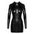 Högt skuren, långärmad miniklänning från Noir i trendig svart powerwetlook. Mjuk och elastisk för maximal komfort. I en midjebetonande skärning med hellånga 2-vägs-dragkedjor över brösten ner till fållen.
