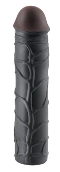 Penis sleeve with pronounced veins and firm padded glans that extend the penis by 7.6 cm. It also makes the penis a wonderful 66% thicker and supports the erection at the same time. It can be cut to fit.