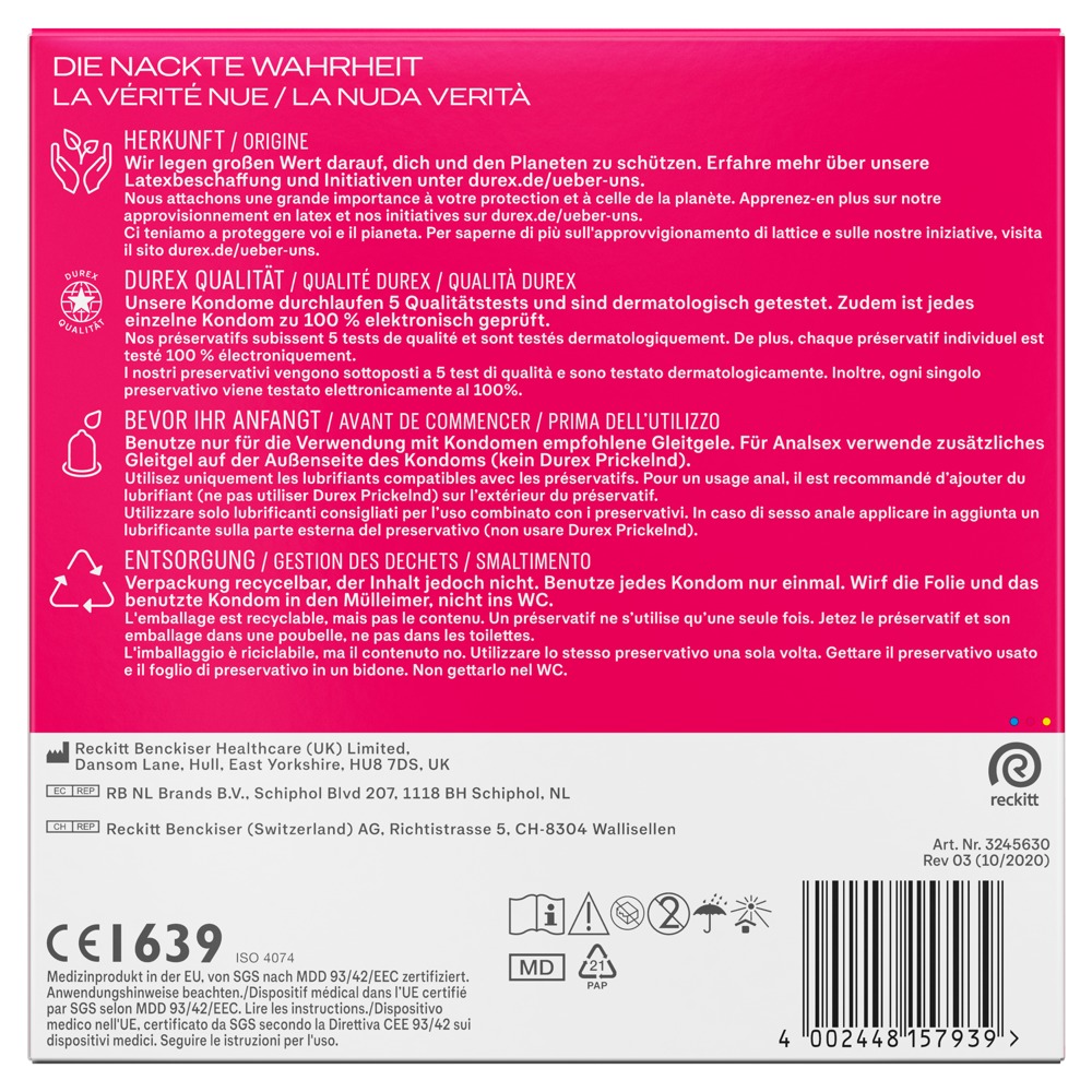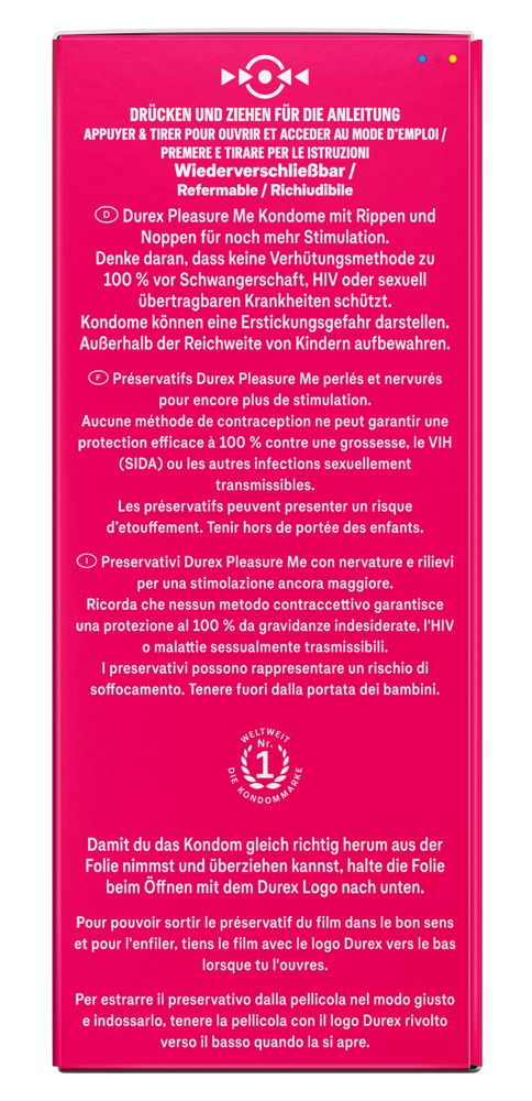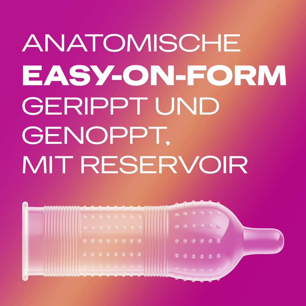 Diese transparenten Naturlatexkondome Pleasure Me von Durex stimulieren intensiv beim Geschlechtsverkehr. Mit extra viel Feuchtbeschichtung auf Silikonbasis. Anatomische Easy-on-Form in regulärer Passform mit Reservoir.