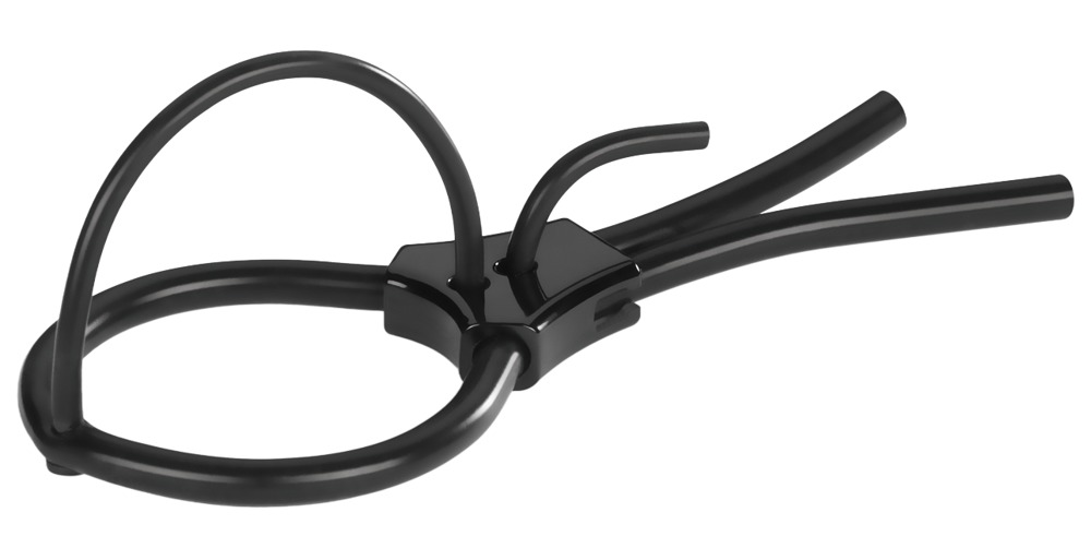 The bi-polar E-Stim glans loop, Pure Pete from Mystim, is for the Tension Lover or Pure Vibes stimulation device from Mystim. The glans loop fits snugly around the corona (of the glans) and transmits stimulating electrical impulses to the silicone arch that goes over the tip of the penis. A stimulating current right on the spot! The loop and silicone arch are adjustable and can be fixed in place for a perfect and comfortable fit.