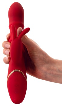 The compact Rabbit Vibrator with 3 Moving Rings from You2Toys delights two hotspots at once! On the inside of the vagina with intense vibrations and the 3 diametrically moving rings. And on the outside, the clitoris with dynamic vibrations. Twice the pleasure for twice the climaxes!