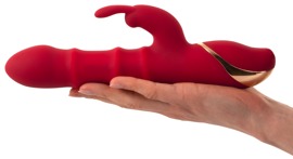 The sophisticated dual stimulation offers 3 massage modes of the moving rings in the shaft and 10 vibration modes in the bulging tip and in the clitoris bunny. The functions can be conveniently controlled directly on the toy at the touch of a button – separately or excitingly combined with each other. Two powerful motors provide reliable power.