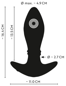 Gesamtlänge 16,4 cm, Einführlänge 13,5 cm, Ø max. 4,9 cm, Verjüngungs-Ø 2,7 cm.
