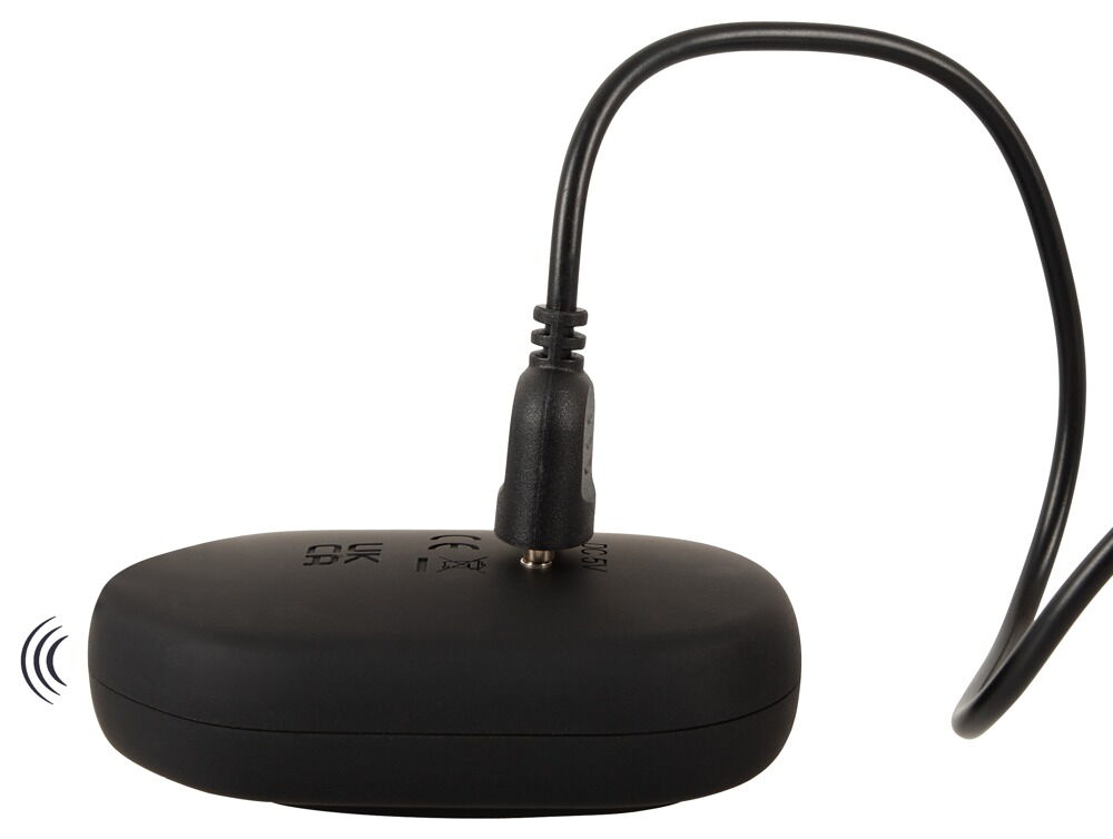 Pluggen och fjärrkontrollen är uppladdningsbara - inklusive USB-laddningskabel.