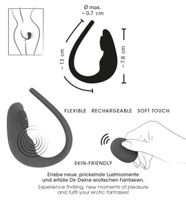7 cichych trybów wibracji można łatwo kontrolować za pomocą pilota - nawet przez partnera. Wibracje są optymalnie rozprowadzane na wypustkach stymulujących łechtaczkę, wyraźnie wyżłobionym wzgórku sromowym i wąskim stymulatorze odbytu/ krocza, zapewniając wszechstronne rozpieszczanie.