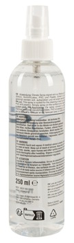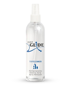 Reinigingsspray van Just Glide voor liefdesspeeltjes van siliconen, rubber/latex, PVC en plastic. Gewoon erop spuiten en afvegen met een schone doek. Zeer zuinig in gebruik - een paar keer sprayen is genoeg voor een perfecte reiniging. 250 ml.
