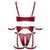 Ensemble excitant de Cottelli BONDAGE avec soutien-gorge souple, slip à jarretelles ouvert et deux attaches souples. Un look mat rouge noble mis en scène avec style par des anneaux (de ligature) et des accessoires argentés. Doux et élastique sur tout le pourtour pour un grand confort. Soutien-gorge avec anneau entre les bonnets souples. Les bretelles et la fermeture à crochets dans le dos sont réglables. Slip façon porte-jarretelles avec ceinture à hauteur de la taille, fermeture à crochets réglable à l'arrière. Chaîne stimulante amovible dans l'entrejambe complètement ouvert - jusqu'au-dessus des fesses. Les jarretelles ainsi que les lanières sur les cuisses sont réglables de manière adaptée. Les attaches peuvent être accrochées dans les nombreux anneaux avec leurs mousquetons. Les manchettes de cheville souples s'enfilent et s'enlèvent rapidement grâce à leurs fermetures velcro réglables.