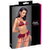 Bezczelny zestaw bielizny od Cottelli COSTUMES z miękkim biustonoszem, szelkami bez krocza i chokerem. W czerwoną kratkę z wyrafinowanymi detalami. Biustonosz z pierścieniem między miękkimi miseczkami, ramiączka są regulowane. Stringi Ouvert również z pierścieniem z przodu i 2-warstwową falbanką w pasie. Stymulujący naszyjnik z pereł w całkowicie otwartym kroczu jest odpinany. Podobnie jak regulowane paski do pończoch z regulowanymi paskami na udach. Wąski czerwony kołnierzyk z serduszkiem z kryształu górskiego i zapięciem na zatrzask również można dopasować.