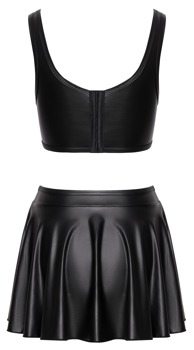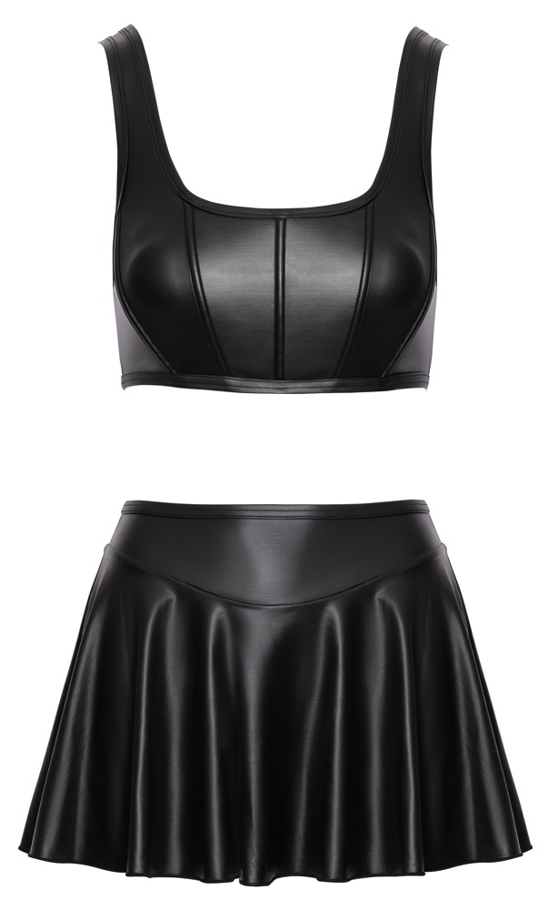 Kort korsettop og mininederdel fra Cottelli PARTY. I et trendy sort mat look – blødt og elastisk for maksimal komfort. Crop-toppen har formstøbt udbening foran for at give en smuk silhuet. Hægtelukningen bagpå er 2-vejs justerbar. Den svingende, udsatte mininederdel har en smuk, elastisk linning.