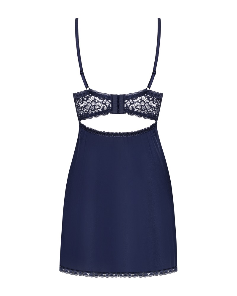 Babydoll from Drimera collection, in airy style, tempts with deep, dark blue colour and softness of lace. Bra created especially for the big bust will emphasize curves and will give a feminine charm. Sensual cutting on the back will guarantee extremely amazing night!