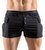 Svarta shorts från Svenjoyment i ett lätt stretchmaterial med trendig, matt finish. I en workerstyle med tryckknappar framtill samt 2 stora fickor på sidorna och 2 fickor baktill - alla fickor har tryckknappslock.