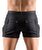 The loose, black shorts from Svenjoyment are made out of slightly stretchy material with a matte look finish. They are in a worker style with a row of press studs at the front. There are also 2 large pockets at the sides and 2 pockets over the buttocks. All the pockets have press studs.