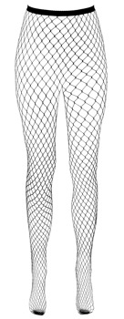Zwarte, zijdeachtige kruisloze visnet panty van Cottelli LEGWARE met modieus grote mazen. Zeer elastisch en voelt zacht aan vanaf de elastische tailleband tot aan de tenen. Met discrete opening in het kruis.