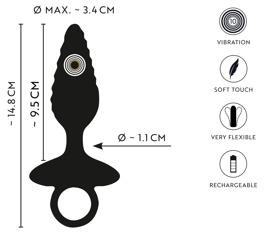 No hay nada más tentador para comprar que tener un producto en las manos y experimentar sus beneficios por uno mismo. Y este sedoso y suave plug vibroanal con su distintivo diseño en espiral impresiona por su aspecto y tacto, así como por su facilidad de uso. Original plug anal flexible de diseño retorcido con vibraciones de ANOS con 10 modos de vibración y un práctico anillo en el tapón.