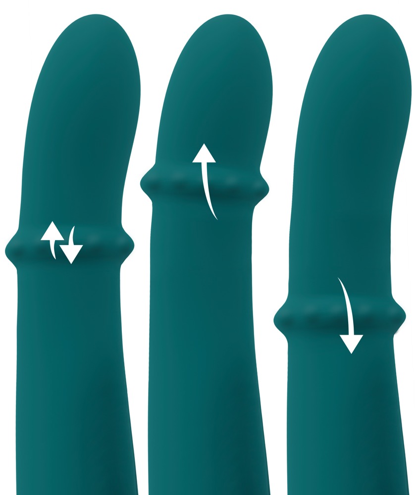 Den deilige dualstimuleringen skapes av 10 massasjemodus i Moving Ringen i det faste skaftet, og 7 vibrasjonsmodus i tuppen. Den perfekt formede og bøyelige klitorispirreren stimulerer med7 nikkende bankemodus. Alle funksjoner justeres enkelt per tastetryll på vibratoren - separat eller kombinert. 3 kraftige motorer skaper power.