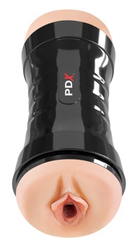 Beidseitig verwendbarer Masturbator Wet Pussies Super Flip-A-Pussy von PDX Extreme mit Vagina-Öffnung auf der einen Seite und Anus-Öffnung auf der anderen. Für den schlüpfrigen Handjob-Spaß braucht es kein Gleitmittel. Der Masturbator wird nur mit ein wenig Wasser benetzt! So wird das hautähnliche elastische Fanta-Flesh-Material schön geschmeidig und vermittelt ein sehr realistisches Gefühl. Dazu massieren aufregende Strukturen im Inneren beim Handjob intensiv. Der Masturbator liegt dabei mit seinem griffigen Gehäuse perfekt in der Hand.