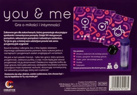 L'eccitante gioco di coppia you & me con 90 idee erotiche innovative, suggerimenti sexy e attività avventurose. In questo gioco sofisticato, partecipare è eccitante e stimolante quanto vincere!